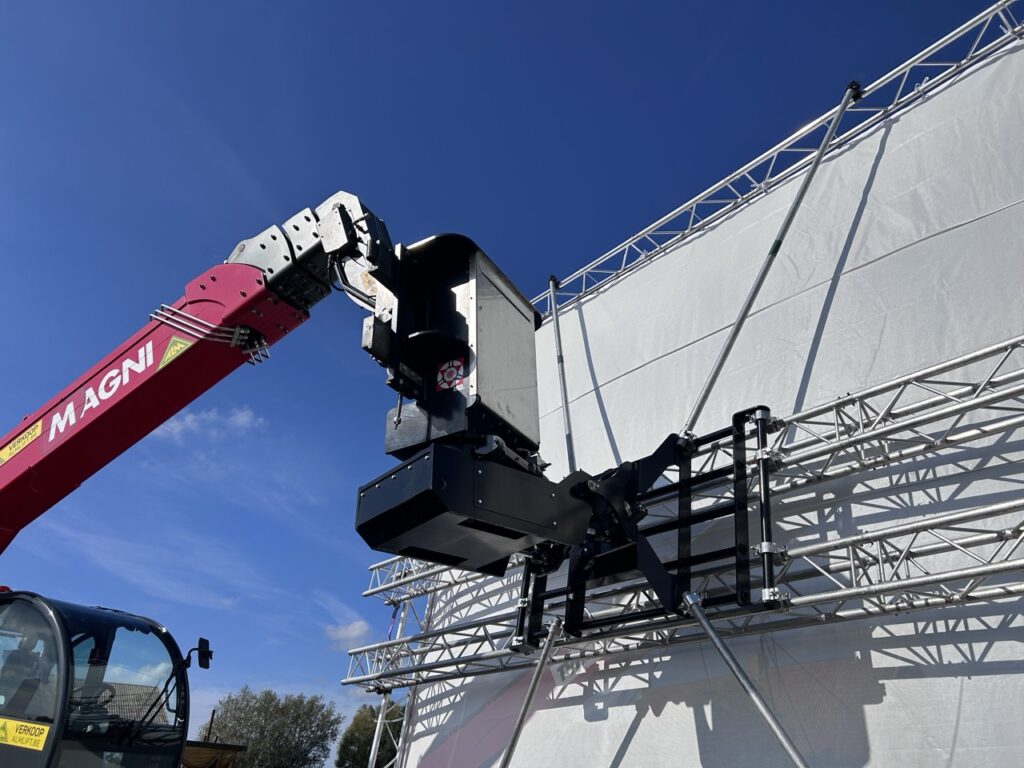 From September 2025, I’ll also own a Romastor 4D Film Standalone. Combined with a telehandler, this rotating platform allows us to silently move a blackout/green screen lamp or other structure weighing up to 900 kg, Silent and remotely